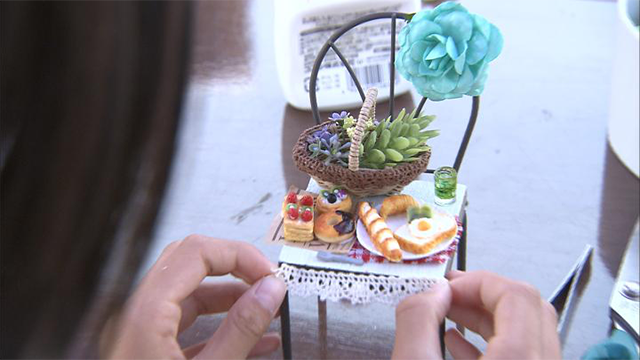 この日、敏幸さんは竹細工に没頭していました。以前から敏幸さんは畑を耕す農夫などの農村風景を竹細工で作っていました。「のだけ村には、いろんな作品を作る方が集まるので、皆で協力して一畳位の大きさに昔の農村風景を表現したい」と敏幸さん。完成が楽しみです。