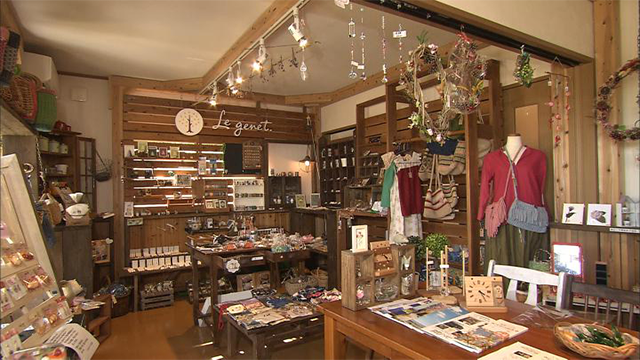 「のだけ村」敷地内の雑貨店。様々な種類のハンドメイド雑貨を展示販売しています。樹脂粘土やペーパークイリングなどのワークショップも開催しています。