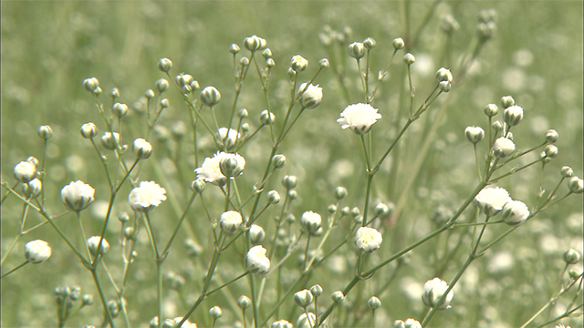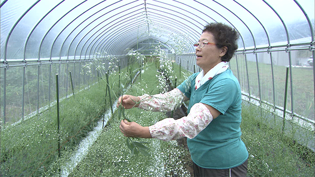 今年から新たに始めたカスミソウの栽培。今日は初出荷です。折れないように注意して、1本ずつ丁寧に摘み取って、この日は20本出荷します。夕方に、カスミソウ栽培の仲間と一緒に出荷。集められたカスミソウは1本ずつチェック、出荷できるサイズにカットし、サイズごとに束ねたものを、透明なフィルムに入れて箱詰めします。「西郷の花として全国に広まってくれたらうれしい」と、和子さん。その夢、ぜひ実現させましょう!