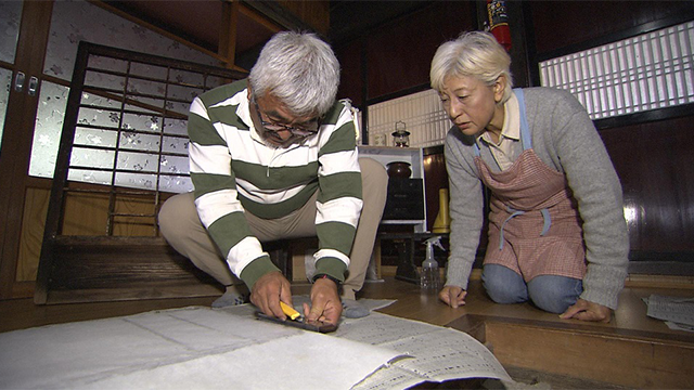 藤田さんご夫婦が暮らす築170年もの古民家には、手を掛けて修復した方が良い部分があります。屋根裏にある明かり取りの窓は、障子紙一枚で外と中を隔てているのですが、その一部が移住前から破れていました。温彦さんと理世さんは、地元の手漉き和紙「内山紙」を使って障子の貼り替えを行い、キレイな障子に変わりました。これで隙間風が入らず、今年は冬の寒さが少しはマシになるのでは、と二人は期待しています。