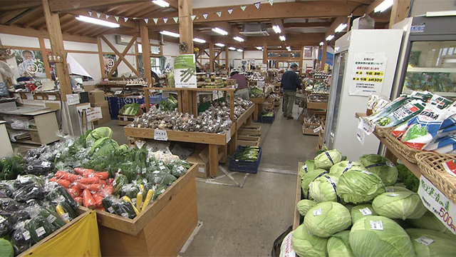 飯山市の野菜や特産物が集まる道の駅「花の駅 千曲川」。