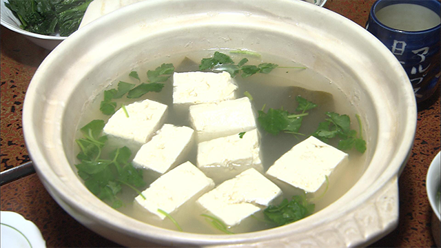 修輔さんがやって来たのは、近くにあるカレーカフェ「ゆいま〜る」。“地元の食材を使って料理を出したい”と、店主の井口さんが考案した料理の試食会が行われました。若木屋の豆乳と厚揚げに、近所の農家さんが作ったレモングラスやパクチーを使った、トムヤムクン風の鍋。試食は好評で、井口さんの新提案に修輔さんも、“もっと若木屋の豆腐をアピールしていきたい”と意気込んでいます。