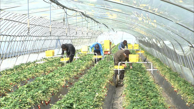 篠原家が育てているイチゴは、栃木県のブランド「とちおとめ」。早朝から、ご夫婦と宏明さんの父・芳男さん、長男・和貴さんの3世代で収穫を行います。収穫後は大きさや形で分類して、決められた重さになるようパック詰めします。この難しい作業を手際よくこなす和貴さんは、頼もしい存在です。