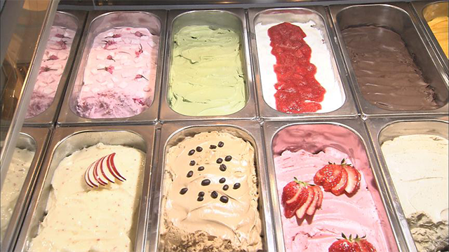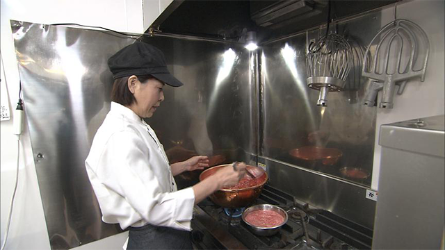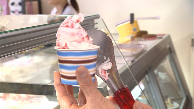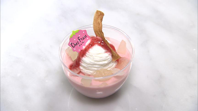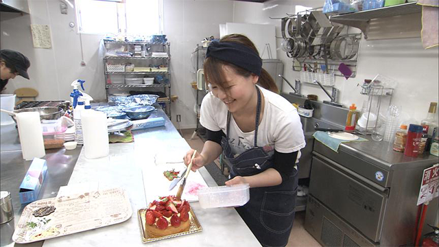 朝摘んだイチゴは店に運ばれてスイーツに変身します。ジェラート担当の和香子さんは、イチゴをたっぷり使ったイチゴソースを作ります。それをミルク味のジェラートに載せれば一番人気の「とちおとめミルクジェラート」の出来上がりです。一方、長女の由佳さんはケーキ担当。イチゴの綺麗な断面を生かした盛り付けにこだわっています。