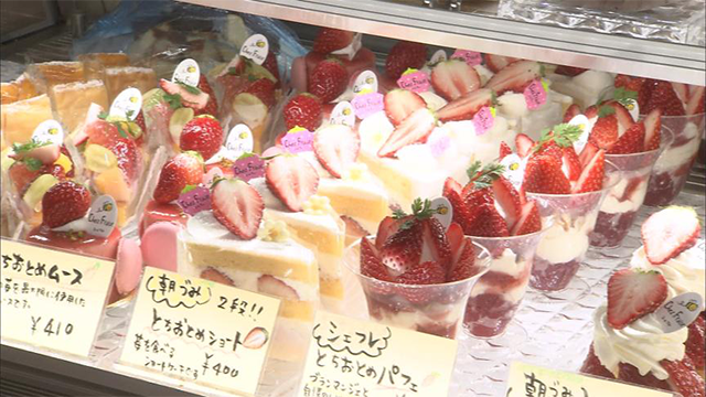 栃木県鹿沼市で育った和香子さんは、21歳の時にイチゴ農家2代目の宏明さんと結婚。2人の子どもが生まれました。子育てが一段落し、イチゴ栽培を手伝い始めた和香子さんが目を向けたのは、選果する際に出る規格外のイチゴでした。その多くが廃棄されてしまう規格外のイチゴを使って、和香子さんは洋菓子店を開く夢を描きました。長男の和貴さんがイチゴ農家を継ぎ、長女の由佳さんがパティシエになると、和香子さんの夢は現実味を帯びてきました。そして家族で話し合い、去年6月、自分たちで育てたイチゴをスイーツにする店『Chez Fraise(シェフレ)』をオープンしました。“Chez Fraise”とは、フランス語で“イチゴの家”という意味。店内にはイチゴをたっぷり使ったスイーツが並びます。