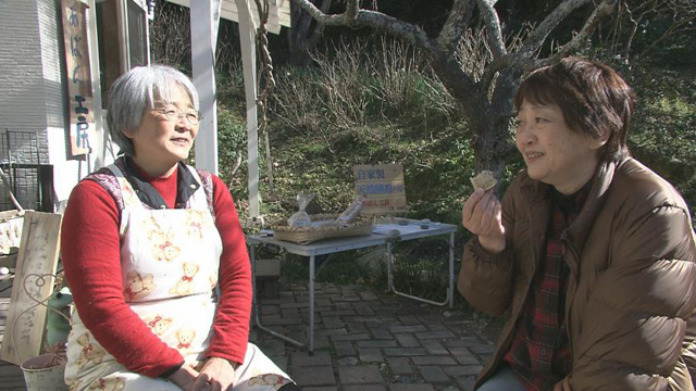 背中を押してくれた友人の伊藤弘子さん(60歳)も来店しました。「パン売ればいいじゃないって言ったんです」と伊藤さん。「その一言で木に登ってしまった」と笑顔の敦子さん。敦子さんのパン店「あぱん工房」は皆さんに愛されています。