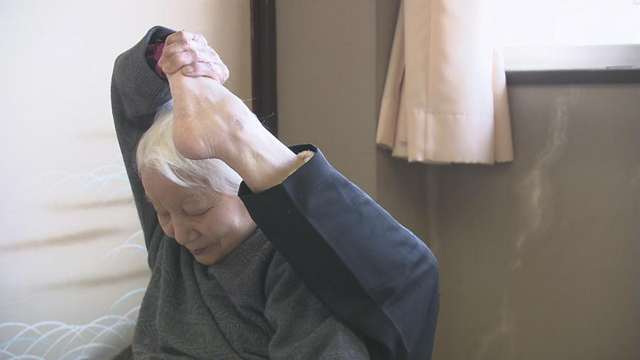 「あぱん工房」の営業日以外は、様々なことにチャレンジしている敦子さん。ヨガもやっています。と言っても、ヨガの先生は、母・千代子さん(86歳)。場所は地域の公民館。当初は千代子さんの送り迎えだけでしたが、せっかくだからと3カ月前から一緒にヨガを始めました。86歳とは思えない柔軟な千代子さんに参加者の皆さんはビックリ。