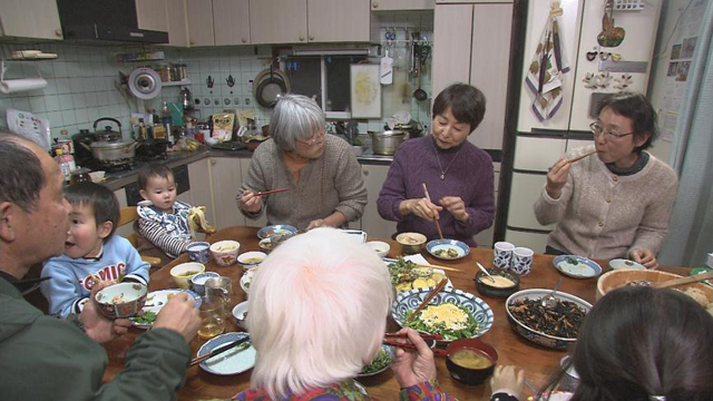 木更津市で暮らすお孫さん3人と、広島市で暮らす長姉・啓子さん(63歳)と所沢市で暮らしている次姉・純子さん(61歳)が遊びに来ました。夫・裕さんがオコワを作っておもてなしです。夕食時、お姉さんは「敦子のパンは昔から大好きで、ここに来る楽しみの一つ」「パンを売るようになってパン作りの腕はグンと上った」と敦子さんのパンを大絶賛でした。