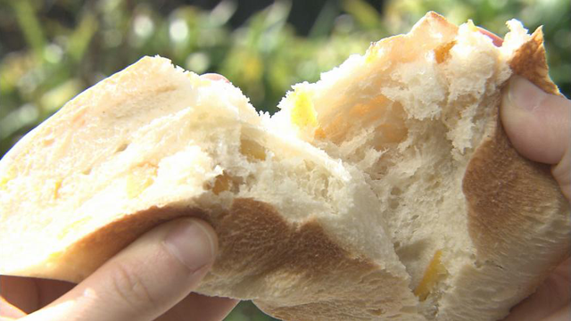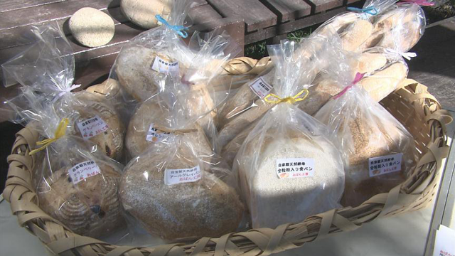 パンの販売は予約制。ぶどう、甘酒、酒粕の自家製天然酵母を使い作っています。甘酒の天然酵母で作る『全粒粉入り食パン』はモチモチの食感。ぶどうの天然酵母で作る『オレンジピールパン』『アップルロールパン』『ベーコンパン』などは「噛めば噛むほど味わいがある」と人気です。注文の多い日は30個程作っています。
