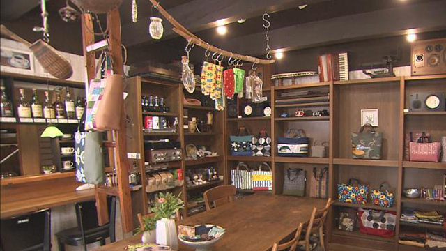 しかし、正弘さんの定年退職が近づくと、閉めたままの店をそのままにしておくのはもったいないと、夫婦で考えるように。奈緒美さんは、足踏みミシンを使ってカバンや小物を手作りする店を始めたいと家族に相談。すると、東京でグラフィックの仕事をしている長男が、足踏みミシンをデザインした看板を送ってきたのです。その看板に背中を押され店の改装を進めると、今度は正弘さんが、カフェコーナーを始めることに。こうして2015年7月『ハンドメイドショップ TSUKURU』をオープンしました。