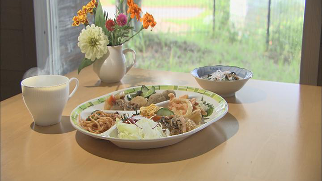 『農園レストラン つつじヶ丘』では、その日にある食材を見て、メニューを決めます。この日、安子さんが持ってきたのは正人さんと収穫したナス、キュウリなど。ナスは味噌和えに、キュウリは春雨と一緒に中華サラダにしました。レストランには他にも、肉じゃがやカレーなど15種類以上の料理が並び、バイキング形式で食べられます。