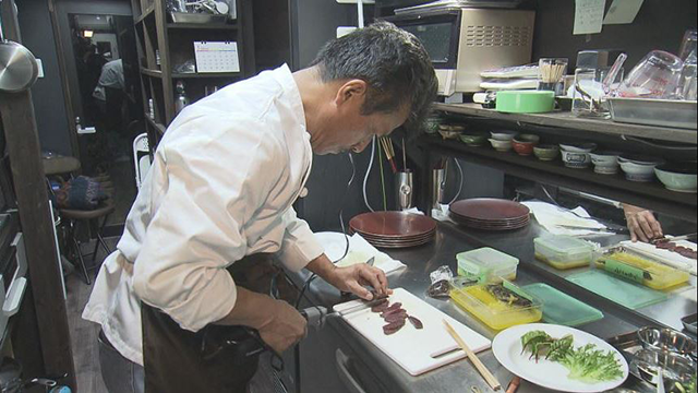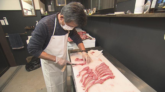 「ジビエ」とはフランス語で、狩猟で得た野生の鳥や獣の食肉のこと。30代でジビエ料理に魅せられた滋さんは、自ら猟も行います。この日は2羽のカモを仕留めました。また、猟の師匠から「イノシシの子どもがかかった」と連絡があれば、急いで駆けつけます。「命を頂いている。一番の供養は美味しかったと言ってもらうこと」と話す滋さん。そのための努力は惜しみません。ジビエの鮮度を落とさぬよう、その日のうちにさばきます。