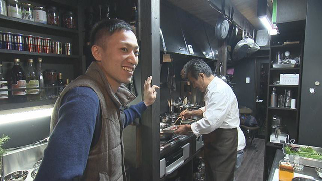 営業を終えた厨房に長男・渉さんの姿がありました。滋さんが考案した新メニューの意見を聞くためです。出来上がったのは「イノシシのハラミのウイスキーフランベ」。脂が多く、敬遠されがちな部位をあえて使いました。「脂がすごく甘い」「もっとカリカリにしたら良いかも」とのアドバイスが。渉さんは18歳の時、父・滋さんの勧めもあって料理人の道に進みました。今では、親子で極める道となっています。
