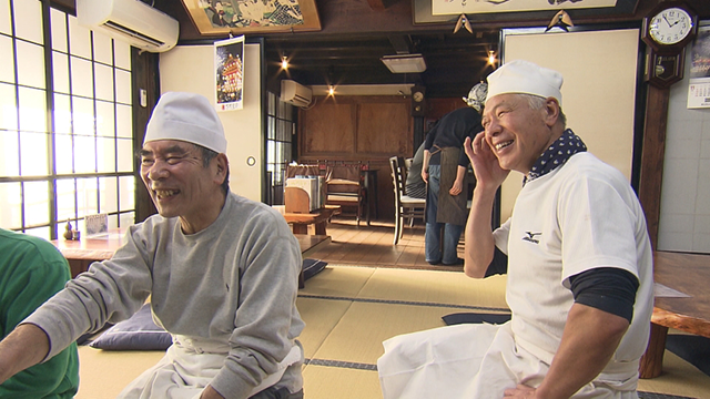 秩父市で生まれ育った大澤さんと西さんは、中学から高校まで同じ学校に通った同級生。高校卒業後、大澤さんは地元の消防署に就職。29歳のときに明子さんと結婚し、2人の男の子が生まれました。西さんは、東京で食品販売の仕事に就きましたが、3年後地元に戻りスーパーマーケットに再就職。26歳のときに明恵さんと結婚し、2人の子どもが生まれました。趣味で大澤さんが“うどん打ち”、西さんが“蕎麦打ち”を始めたのは58歳の時。打てば打つほど大澤さんはうどん、西さんは蕎麦の奥深さに魅せられ、徐々に腕を上げていきます。定年退職後、大澤さんは空き家になっていた築150年の実家を使って、うどん屋を始めたいと準備を進めていました。一方、西さんは蕎麦打ちの腕を買われ、道の駅で蕎麦を打っていました。