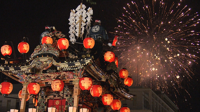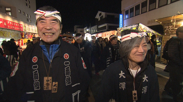 秩父神社例大祭の当日。大澤さんご夫婦も鉢巻き半纏姿で山車行列に参加。300年余りの歴史がある祭りは、2016年にユネスコの無形文化遺産にも登録されました。「笠鉾(かさぼこ)」と呼ばれる山車の上で扇子や提灯を振る「囃子手(はやして)」は一生に一度の大役。大澤さんも27歳のときに囃子手を務めたそうです。祭りのクライマックスは、急勾配の坂道を上がる「団子坂の曳き上げ」。およそ15トンの山車が坂道を上がると大輪の花火が!来年への期待と願いを込めて、みなさん師走の夜空を見上げていました。