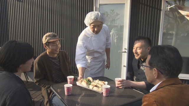 常連さんに「レンコンのパンを作ってよ」と、お願いされた泰行さん。新作のレンコンパンを試作します。1つはキンピラにしてもっちりした白いコッペパンに挟み、もう1つはレンコンパテのバーガーに。常連さんや、次男・雄仁さんご夫婦、「MeeToco」のスタッフの皆さんが集まって試食会が開催!どちらも「美味しい!」と好評でした。