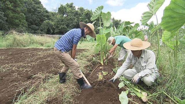 朝、畑にやってきた壽一さん。この日は、農作業仲間と里芋の収穫です。午後には、お店で蕎麦打ち教室を開催。生徒は里芋の収穫を手伝ってくれた小笠原さんと八木さんです。収穫したばかりの里芋も天ぷらにして頂きました。気の合う仲間と人生を“一生懸命に楽しむ”壽一さんです。