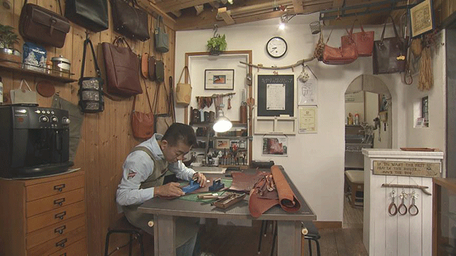 一成さんが営む『キナリ革工房・鎌倉』。バッグや財布など、オーダーメイドの革製品を作っています。一成さんが好きな革は、“タンニンなめし”。使えば使うほど味が出る、まさに経年変化が楽しめる素材です。そして、一成さんのこだわりは仕上げの手縫い。この手縫いの工程で革の魅力にハマったそうです。革と向き合っているときの一成さんは、とても幸せそうです。