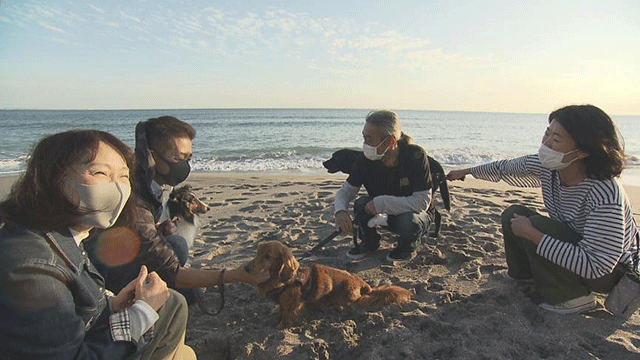 夫婦が一番大切にしているのが、愛犬リナとの時間。夕方になると、近くの浜へ。愛犬のリナは、海辺の散歩が大好きなんです。