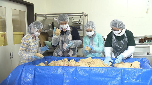 『夢や』のもう一つの楽しみは様々な手作り教室。この日、行われていたのは味噌作り。指導は『夢や』の“糀番長”こと田村かつ子さん。毎年参加してくれているご夫婦、初めて参加する親子、参加者みんなで盛り上がりました。