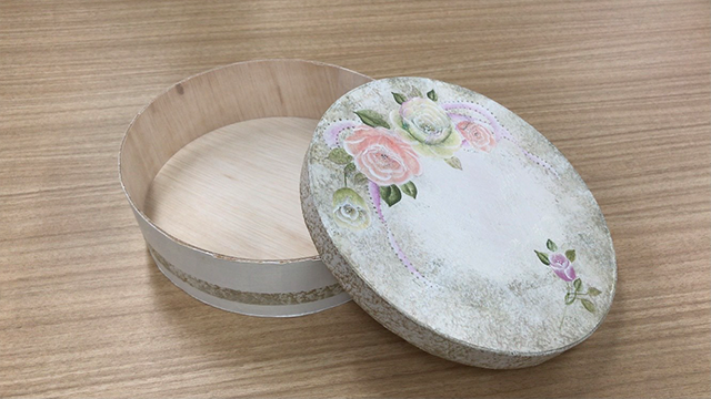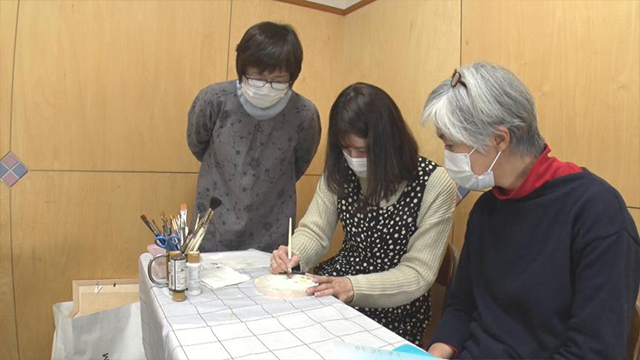 この日は夢美さんが長年、講師をしているトールペイント教室が開かれました。トールペイントは、カーボン紙で図柄を写し、アクリル絵の具を使って色を塗っていく“大人の塗り絵”。教室はいつも和気あいあい。楽しい雰囲気の中、素敵な作品が生まれています。