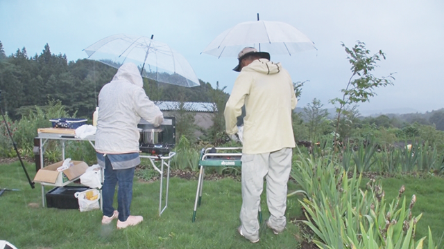 オープンに向けて進んでいたのが、トイレやシャワー室などサニタリー棟の建築作業。豊さんと共に施工を担当するのが、地元の大工・小澤さん。「いい所に目を付けた。場所としては最高!」と景色を絶賛していました。また、ご夫婦の作業の合間のお楽しみは、ご近所にあるレストラン『わくわく』での食事。お店のオーナー・金海さんはご夫婦に、キャンプ場建設に力を貸してくれる仲間をたくさん紹介してくれました。そして、心強い助っ人が長男の幸一さんと典子さんの姉・昌子さん。軽石を集めたり花を植えたりとキャンプ場整備の手伝いに来てくれました。ご夫婦の60歳を過ぎてのチャレンジを、たくさんの方が応援してくれています。