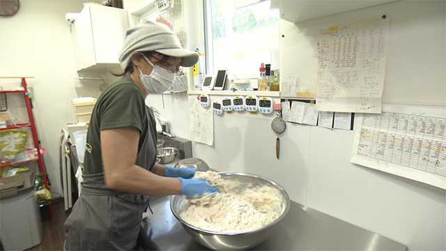 『柑山』が営業日の朝8時、英木さんが焼き上がったパンを持って茅ヶ崎市へ。向かったのは去年11月に英木さんが始めたラーメン店『Cinq(サンク)』です。かつてバーだった物件を借りて、夫婦でお金をかけず改装しました。こちらでは、植物性の食材だけで作るVeganラーメンが大人気。「罪悪感なくラーメンを楽しめる」と好評です。