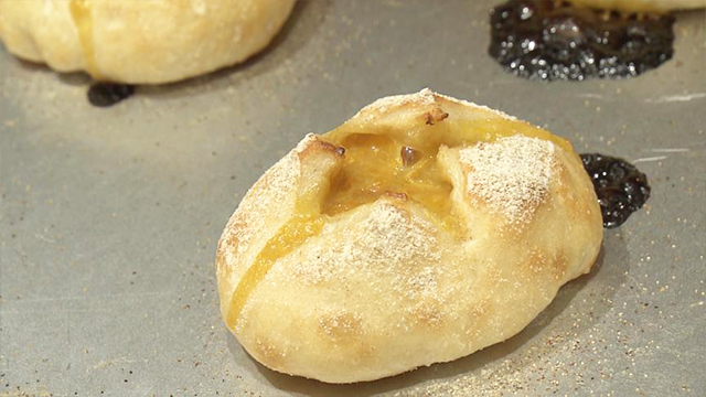 『柑山』の営業日は金・土曜の週2日。菜穂子さんのこだわりは徹底した手づくりです。なんと生地も手ごねです。生地には北海道など国産のブレンド小麦粉を厳選して使用。具材は地元でとれたミカンからジャムを、豚肉を丁寧に薫液に漬け込んだベーコン、あんこも手づくりします。さらに…「わざわざ山に足を運んでくださるお客様に喜んでもらいたい」と、パンの中には焼き上げた時にあふれ出てしまうほど具材がたっぷり!パン作りを教わっている先生からも「入れすぎ!」と言われたそうですが、ここも菜穂子さんのこだわり。そんなパンは大人気で地元の皆さんに愛されています。