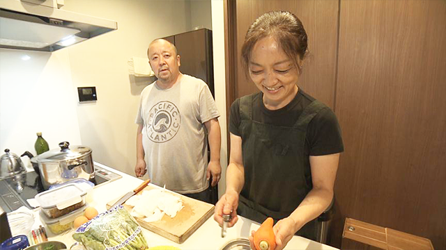 夕方、夫婦仲良くキッチンに立ちます。自宅の食事作りもいつも家族の健康を考え、自分の時間を後回しにしてこだわってしまう菜穂子さん。英木さんは少しでも楽が出来るように…と食事作りをサポートしてくれています。この日は、同居している長男・峻太郎さんと、休暇で仕事先の静岡から戻ってきていた三女・葉さんも一緒です。この日は具だくさんのパスタや豚肉の角煮など、美味しそうな料理が食卓に並びました!「お母さんはいつも努力しすぎて無理しちゃうから、休憩も必要だよ!」とエールを送るお子さんたちに、目頭を熱くする菜穂子さんでした。