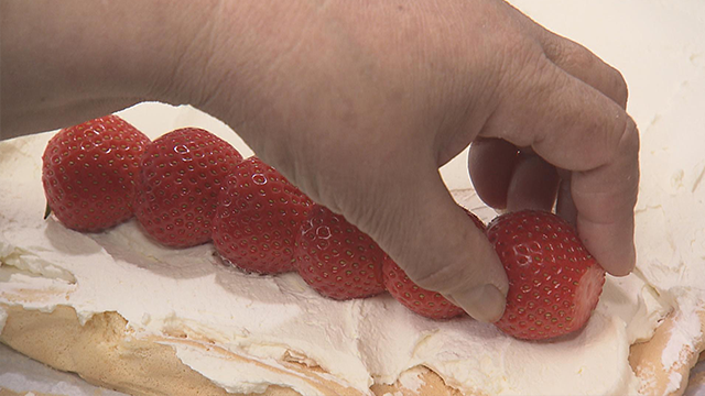 定休日。忍さんは、埼玉県本庄市のイチゴ農園にやってきました。お目当ては甘さと酸味のバランスがいいと言われている「やよいひめ」。シフォンケーキの他にタルトやロールケーキにも使います。1日に焼き上げるシフォンケーキは8種類16ホール。ふっくら焼き上がったシフォンケーキは十分に冷まして型から取り出し、切り分けてラッピング。全て忍さん一人の手作業なので1日仕事、お疲れ様です。