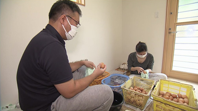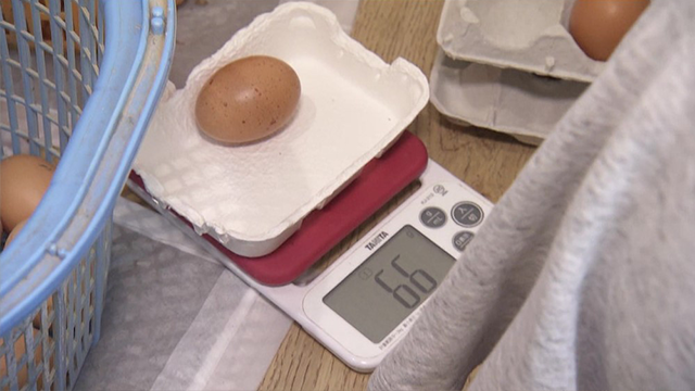 淳一さんとあゆみさんは毎朝、鶏舎で卵を集めます。集めた卵は、ひとつひとつ丁寧に検品され、サイズごとパックに詰められます。この作業を続けてきた淳一さんとあゆみさんは、卵を持っただけで重さがわかるようになってきたそうです。