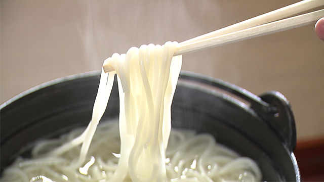 本場・五島列島から取り寄せる五島うどんは、椿油でのばしたコシのある細麺で