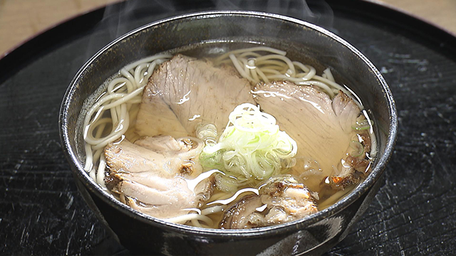 特製つゆや麺の茹で方などは、文子さんが本場・長崎出身の方から教わったもの。店の命のうどんつゆは、「あご(乾燥トビウオ)」を一晩水につけてとった出汁に醬油やみりんで味を整えます。さらに一手間かける工程があるのですが…「ここからはヒミツ」と文子さん。完成した秘伝のつゆは、あっさりして風味豊かな味わいが好評です。また、文子さんの得意料理、豚ロースで作るジューシーなチャーシューをたっぷりトッピングした「肉うどん」もボリューム満点で大人気。おにぎりがかなり大ぶりだったり、付け合わせの惣菜の種類がついつい増えてしまったりと、料理には文子さんの愛情が詰まっています。