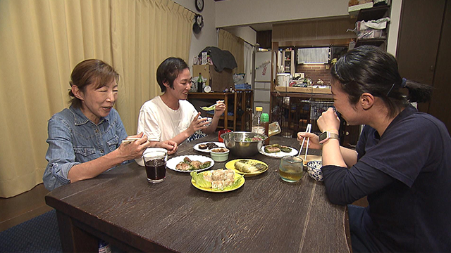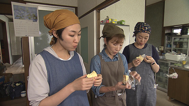 休日、文子さんはいつも店に来てくれる仲間たちの元を訪ねます。まずやってきたのは地元に昔沢山あった「ヤマユリ」の保存活動をしている桜井さん。森を整備し沢山のヤマユリを植えました。良く見るとぽつぽつと蕾がつき、文子さんも感動。ヤマユリは8月に開花予定、可憐な花を見るのもまた楽しみですね!続いては長沼さんの営むりんご園に。余分な実を採る摘果の作業を初めて見た文子さん、思わず「もったいない!」。またブルーベリー狩りも人生初という文子さん、「こんなに大きいの!甘いの!?」と興奮しながら味わいました。最後に訪ねたのは、藤井ちゃんが仲間と暮らすシェアハウス!藤井さんの友人、大工の郡司さんが古い呉服店を改装して、地元の活性化に携わる5人の仲間が住んでいます。20代から70代の5人が暮らし、台所やダイニングルームは共有、個室は、それぞれの個性が出ていてユニークです。また、卓球女子の藤井ちゃんは最近、ここにみんなが楽しめる卓球場を作りました。実は文子さん、卓球体験も初めて!「楽しい!今が青春です」と大はしゃぎ。これまで働き詰めの人生でしたが、まもなく60代を迎えるこれからは、初めてがいっぱい。どうか青春を謳歌してくださいね!