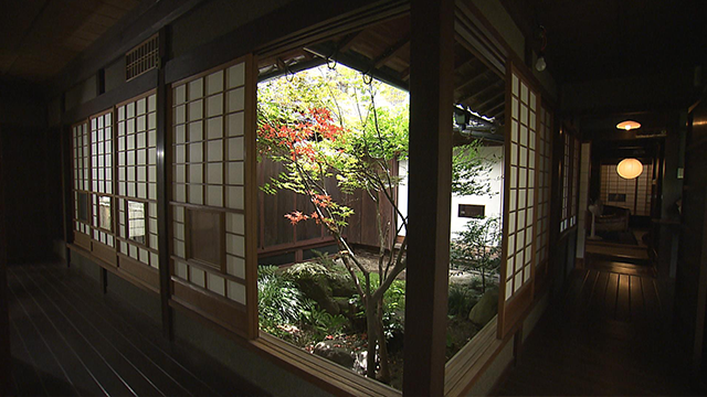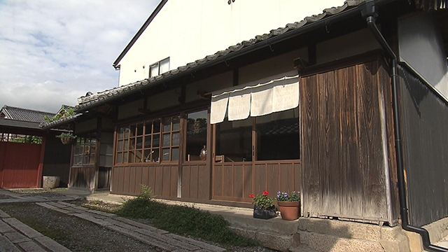 のり子さんとトムさんが一目惚れした、近江日野商人の本宅だった古民家。玄関から土間続きの台所には井戸や釜戸が残るなど、かつての暮らしぶりが垣間見えます。また、座敷は中庭を囲むように設けられ、まるで旅館のようです。「部屋数はわからない、前に数えたけど忘れた(笑)」とトムさん。この大きな古民家で、現在は次男・直二朗さんと3人で暮らしています。