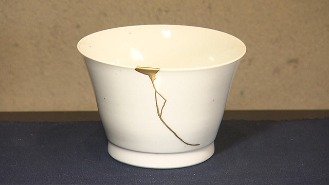 「金継ぎ」は割れたり欠けたりした器などを漆で修復し、金粉で装飾する日本古来の技法です。のり子さんは「金継ぎは“金”が目立つが、本来“継ぐ”ことが本筋。後の人にモノを繫いでいくことが大切」と語ります。