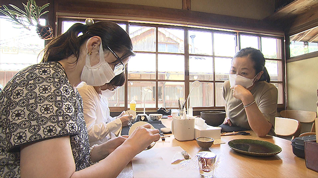 金継ぎは器などの破損状態によって修復の仕方が変わります。割れた破片は、米の粉と漆を混ぜた「のり漆」などで接着。破片が無い場合は、漆に土を混ぜた「錆漆(さびうるし)」で成形します。その後、漆を数回塗り金粉を蒔き、漆でコーティングして完成です。工程ごとの乾燥時間も含めると、およそ2ヶ月から3カ月かかります。金継ぎ教室の生徒さんは「壊れたモノを金継ぎすると、以前よりもっと好きになる」と話していました。