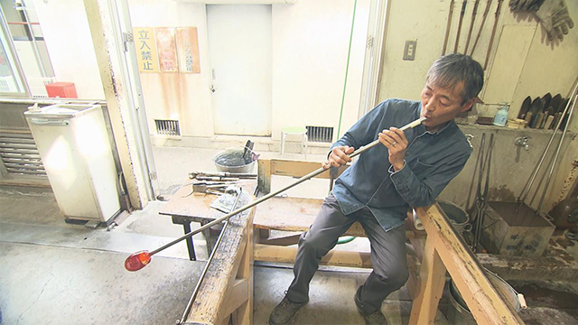 啓二さんも通っている「吹きガラス」を始め、様々なガラス工芸品作りが学べる体験教室です。