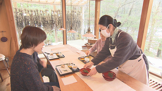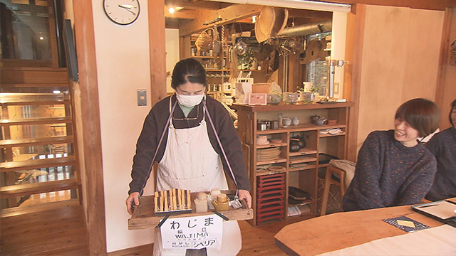 まずは、石川県輪島市の人里離れた山間に移住したご夫婦のお話です。里山で育てた豆や野菜、山の幸を使った“和菓子工房とカフェ”を開いた萩野由紀さん(56歳)と、建築の仕事をしながら妻の活動を支える夫の紀一郎さん(58歳)が主人公。地元のおばあちゃんたちから教わった、自然を敬い暮らす知恵や伝統食作りを生活に取り入れ、里山暮らしを楽しんでいます。東京に生まれ育った由紀さんは建築デザインを学び就職しましたが、結婚を機にアメリカ留学する紀一郎さんについて行くことに。日本と米国を行き来するうち「和紙作りを勉強したい」と思い立った由紀さん。受け入れてくれた紙漉き工房があったのが、輪島市三井町でした。家族と共に訪れると…茅葺の家に田んぼ、美しい自然が織りなす風景はまるで昔話に出てくるような世界。この地が気に入り「移住するぞ」と決めたのは紀一郎さんの方でした。当時3人の子育てに追われていた由紀さんは初めての田舎暮らしに最初は戸惑ったものの、元来好奇心旺盛なタイプ。野菜を育て、四季折々に保存食に加工しながら暮らすおばあちゃんたちと交流するうち、見よう見まねで野菜作りを始めます。地元住民や都会の人を巻き込み、里山の自然や伝統を守る活動もスタート。その一つが田んぼのあぜで豆を育てる昔ながらの「畔豆」の復活でした。子育てが終わる頃、この豆を使って何かをしたいと思い立った由紀さんは、和菓子を作ることに。2020年5月、自宅で和菓子工房『のがし研究所』、完全予約制の『の菓子café』をオープンさせました。食材は小豆をはじめとする6種類の自家製豆に畑の野菜や、山で採れる木の実、海藻など地元のものづくし。さらに地域の伝統行事を自分流にアレンジしてカフェのイベントに取り入れ、お客さん方に伝えています。日々自然に感謝しながら「里山暮らし」を謳歌する由紀さんと紀一郎さん、笑顔一杯の毎日です。