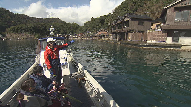 2010年時点で伊根湾周辺の宿泊施設は減り、一時は稼働しているのが2軒ほどになってしまったため、賢吾さんは「いつか40軒に増やし、町を賑やかにしたい」と夢を語っていました。そして今年、なんと海沿いの宿泊施設は35軒になる予定です。宿泊施設の数も、劇的に増えていたんです。鍵夫婦に影響を受けて開業したのが、海の師匠・治成さんの息子・亜衡(つぎちか)さん。実家の舟屋を改装し『舟屋の宿 蔵』を始め、他にも続々と若手が新しい宿を開業しています。これで宿泊できる場所が増え、町に多くの観光客がやって来るようになりました。また、伊根町に新スポットもできました。舟屋を模した形の『舟屋日和』という、飲食店などが入った観光複合施設。実は賢吾さんがプロジェクトリーダーとなって地元の仲間たちと立ち上げに関わりました。これまで人が集まる場所が無かった伊根町にどうしたら人を呼べるか、賢吾さんと仲間たちは、来る日も来る日も会議を重ねて完成しました。海の目の前に建つ施設の中にはお洒落なカフェや、地魚料理や寿司などを楽しめる和食店があり今や沢山の観光客が、この『舟屋日和』を目指して伊根を訪れるようになりました。