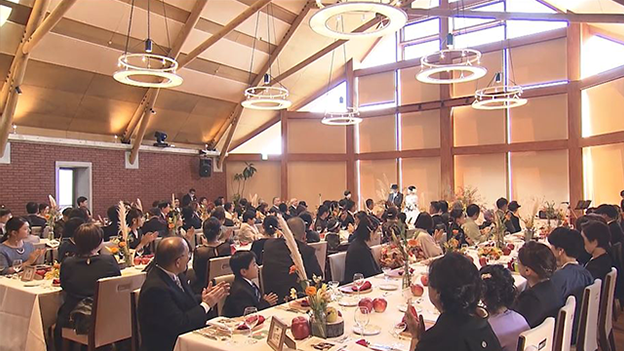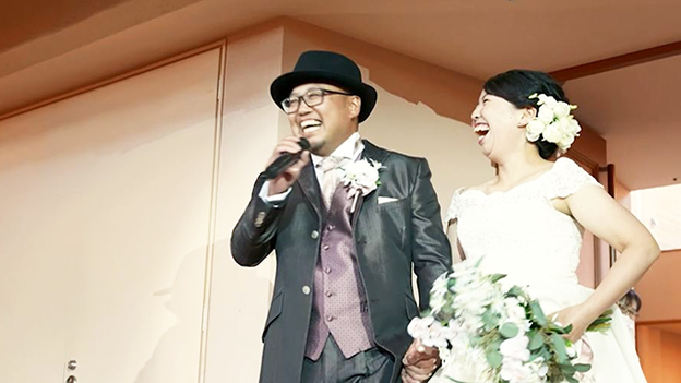 浩さんと愛さんの挙式日。清里高原の披露宴会場には、たくさんの人がお祝いに来てくれました。浩さんはQueenの「I Was Born To Love You」を歌いながら入場です。会場は大盛り上がり!お2人のご両親も大喜びです。浩さん、愛さん、本当におめでとうございます!末永くお幸せに!