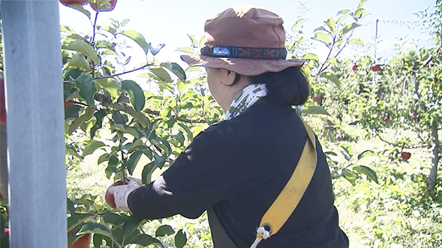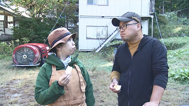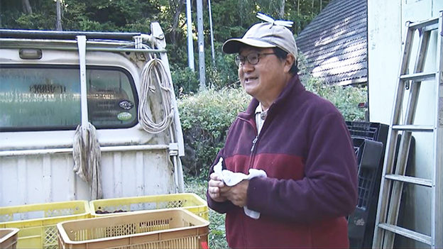 リンゴ栽培をイチから教えてくれた師匠の松本宏司さんの元を訪ねました。松本さんも11年前脱サラし、神奈川県から移住し農家になりました。リンゴの他、お米や栗も育てています。松本さんが収穫仕立ての“早生ふじ”を味見させてくれました。「美味しい!師匠が育てたリンゴの味を目標に、もっと頑張ろう」と決意を新たにする浩さんです。