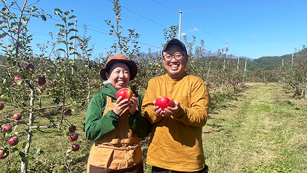 今回の舞台は山梨県北杜市。八ヶ岳を望む畑でリンゴ栽培をしている新婚夫婦、下郡 浩さん(45歳)と支える妻・愛さん(41歳)が主人公です。
