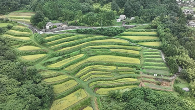 お2人の朝はいつも、1歳の愛犬・カリィとの散歩から始まります。“カリィ”とは、沖縄の方言で「めでたい・喜ばしい」という意味。おめでたい席では「カリィ~」と言いながら乾杯するそうで、なんとも素敵な名前です。でかけるとまずは、お向かいの宮下さんに挨拶をし、集落をゆっくり一周します。この日、たどり着いたのは、お2人が大好きな場所「飯沼の棚田」。村を代表する景勝地です。「中川村には、のどかさや人の温かさがあり、じんわりとくる幸せや喜びを感じることができる」と話す鐘大さん。沖縄のエメラルドグリーンの海も素晴らしいですが、棚田の美しい緑も大好きだと言います。そんな風景を眺め、鳥や虫たちの声を聴きながら、いま改めて中川村に住む喜びを噛みしめているというお2人です。
