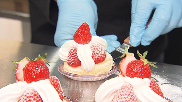 カフェ店内には、浩二さんお手製の可愛らしいケーキが並びます。ですが、元々浩二さんの趣味から始まった“自家焙煎コーヒー”が、あくまでもお店の主役なんだそう。とは言え根っからの凝り性である浩二さんは、何にでも本気で取り組みます。専門学校でプロの技を習得したケーキは、教わった通りでなく主役のコーヒーに合うよう甘さ控えめにしたオリジナルレシピ。とろけるようなやわらかさが人気のバスクチーズケーキは、なめらかな舌触りと表面の香ばしさで、自家焙煎コーヒーとの相性抜群です。さらに、週末だけにお目見えするスペシャルケーキがあります。それは娘・穂花さんが大好きだった地元産のイチゴ「さがほのか」を4個もトッピングする「HONOケーキ」。カスタードクリームと生クリームがたっぷり入る贅沢なケーキです。ある日、ちょっとした遊び心で、イチゴのトッピング方法を勝手に変えちゃった浩二さん。しっかり者の美千代さんに、厳しく作り直しを命じられていました。