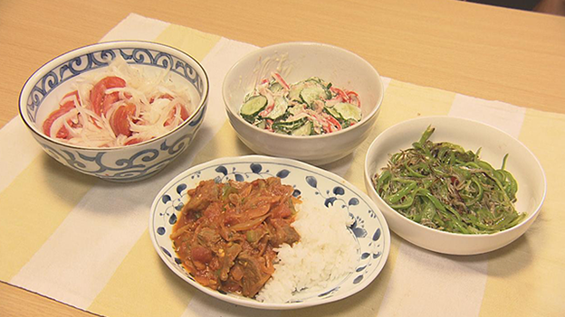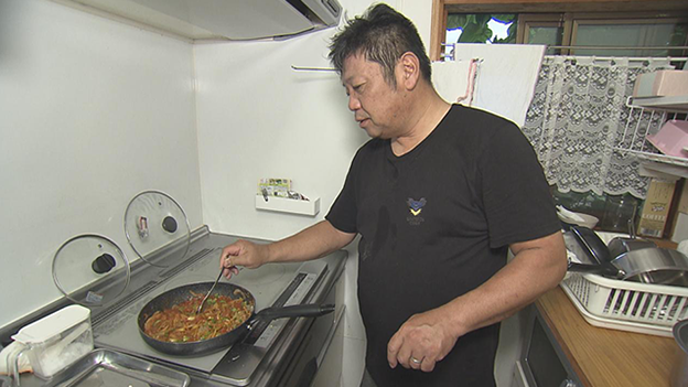 夕食の時間。日々の創作活動などで遅くまで工房にいる容子さんの帰りを待ちながら、夕食を準備しているのは夫の斉さんです。仕事終わりに台所に立ち、ハイボール片手に料理をしながら、「帰りますと連絡が来ても、なかなか帰ってこない」と少し容子さんへの愚痴も…。この日はトマトと玉ねぎのサラダに、ホットな夏野菜カレーなど、自家製の野菜をふんだんに使ったメニューが食卓に並びました。こうして食卓を囲む時間はお2人にとって大切で、安らぎのひと時です。「帰ったらこんなに美味しいご飯がある。バチが当たりそう」と話す容子さん。「美味しい!」と言われた斉さんは、照れながらも嬉しそうな表情です。