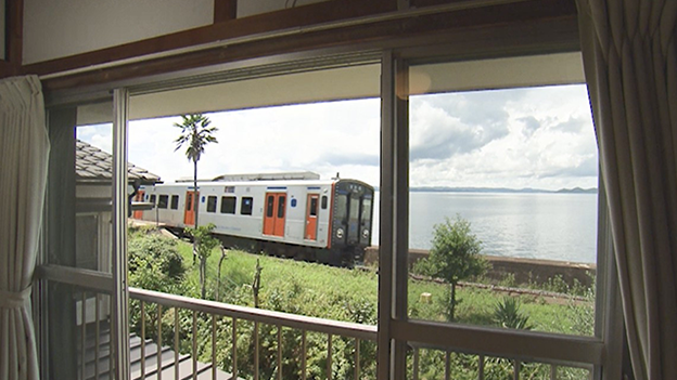 海側の和室の窓からは、大村湾が一望でき、目の前をJR大村線が通過します。晴れた日には夕日が最高です!
