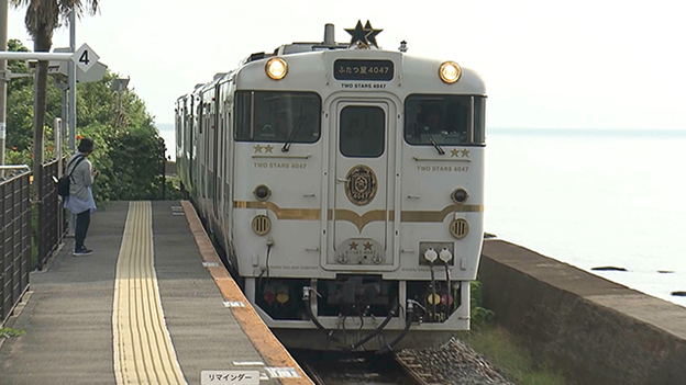 仁さんと晶子さんの活動の場は、宿の経営だけではありません。仁さんは「地域おこし協力隊」の経験を活かして、仲間と一緒に空き家対策に取り組んでいます。かつて、商業施設の企画・施工の責任者を務めていた仁さん、仲間から頼りにされています。東彼杵町のシンボル的な存在と言えば千綿駅。長崎と佐賀を結ぶ観光列車「ふたつ星4047(よんまるよんなな)」も停車します。晶子さんは、ここで仲間と観光客を迎え、東彼杵町の特産品などを販売しています。仁さんも晶子さんも、すっかり東彼杵町の住人ですね。