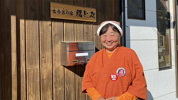 福島市出身のとみ子さん。高校卒業後は三重県にある縫製会社に就職。19歳のとき、お見合いをしたのが東京で大工をしていた飯舘村出身の福男さんでした。恋に落ちたとみ子さんは、21歳で3つ年上の福男さんと結婚。福男さんの実家で、洋裁の仕事をしながら新生活をスタートします。長男も生まれ、飯舘村の暮らしに馴染んでいきました。50代になった頃、村では特産品となる「カボチャ」を開発するプロジェクトが立ちあがります。メンバーに抜擢された、とみ子さん。責任感の強いとみ子さんは、プロジェクトの中心となって邁進しますが、慣れない作業で壁にぶつかることもしばしば。それを支えてくれたのが夫の福男さんでした。2人は活動を進めるうちに夢が膨らみ、「特産品のカボチャを楽しめる農家民宿を開いて、故郷・飯舘村の良さをみんなに伝えよう!」と同じ夢に向かって歩み始めます。そして2011年、ついに特産品のカボチャ「いいたて雪っ娘」が完成。「さあ、いよいよ」…という時、東日本大震災が発生したのです。原発事故で村は避難区域になり、2人も福島市内に身を寄せました。さらに福男さんにがんが見つかり「先の見えない避難生活と夫の病」でとみ子さんは心が折れそうになります。しかし福男さんは病と闘う一方で、避難先でも新たな畑を見つけるなど率先して作業。とみ子さんが「いいたて雪っ娘」を作り続けられるよう、力を注いでくれました。2017年、飯舘村の避難指示が解除されると、福男さんは夢の宿づくりのため、避難先から毎日、村に通いました。そしてとみ子さんも村での「カボチャ作り」を再開。ところが翌年、福男さんの容体が急変。まだ工事の途中でしたが、真新しい客室に2人で一晩を過ごし、福男さんは夢半ばで旅立ちました。その後、とみ子さんは、福男さんの母・ハツヨさんの介護の傍ら、宿を開くための準備をコツコツと進めます。こうして去年6月、とみ子さんは夫婦の夢をついに叶え、『古今呂(こころ)の宿 福とみ』をオープンしたのです。