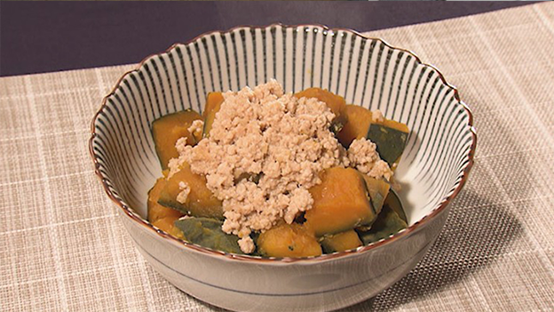 故郷の古き良きものや今、身近にある田舎に帰ってきたような宿にしたいという思いが込められた屋号『古今呂の宿 福とみ』。最愛の夫・福男さんとの夢でもあった「愛する故郷の魅力を伝える宿」は去年オープンし、ついに念願が叶ったのです。亡き福男さんは「木の温もりが感じられるように」と客室を全面板張りで仕上げました。そんな宿では飯舘村特産のカボチャ「いいたて雪っ娘」の料理が楽しめます。皮が雪のように白いことから名付けられたカボチャ。果肉は、色鮮やかでギュギュっと肉厚なので煮崩れしないのが自慢です!とみ子さん曰く「糖度も高く、ポクポク感がありながらしっとり感もある」カボチャだそうです。